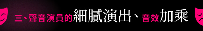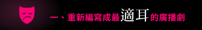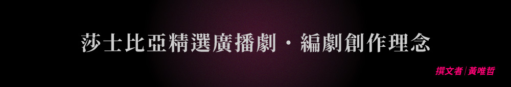但正因如此,若能以廣播劇重新演繹,從台詞的白話處理、幽默橋段的添加、到故事時序的重新梳理、部分情節的簡化與加強,搭配現代音效的畫龍點睛,便能帶給閱聽眾更好的體驗、更容易沉浸於古典傳奇故事中,進而理解莎翁著作的博大精深、對人性鞭辟入裡的闡述。