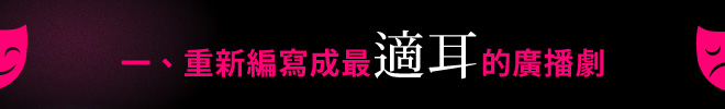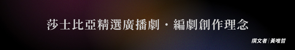 但正因如此,若能以廣播劇重新演繹,從台詞的白話處理、幽默橋段的添加、到故事時序的重新梳理、部分情節的簡化與加強,搭配現代音效的畫龍點睛,便能帶給閱聽眾更好的體驗、更容易沉浸於古典傳奇故事中,進而理解莎翁著作的博大精深、對人性鞭辟入裡的闡述。