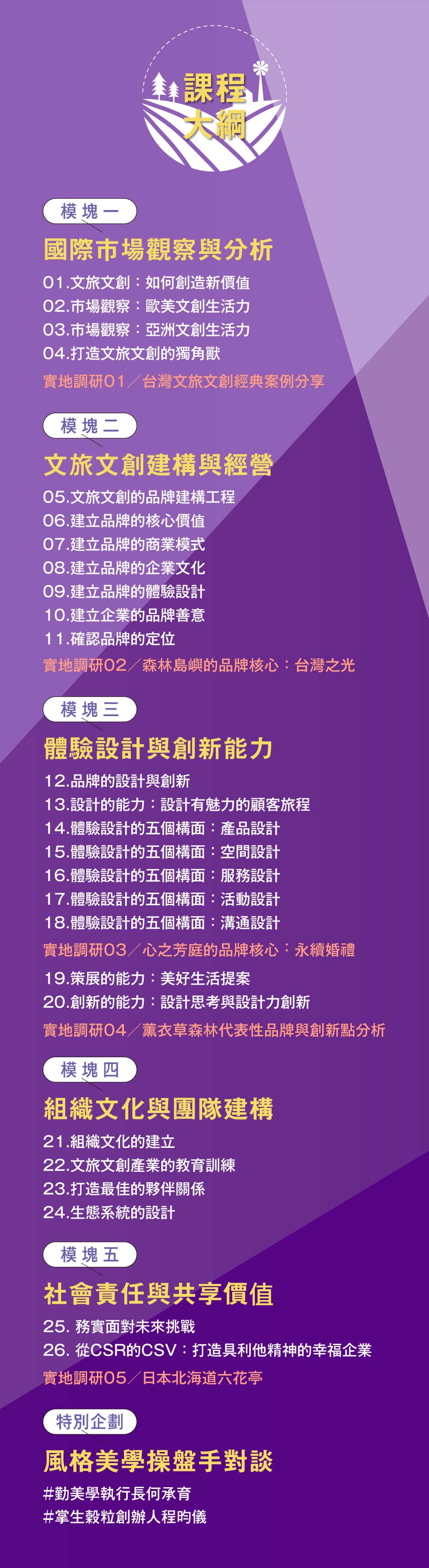 26堂品牌建構經營 x 5堂實地調研分析 x 2堂名人對談風格美學