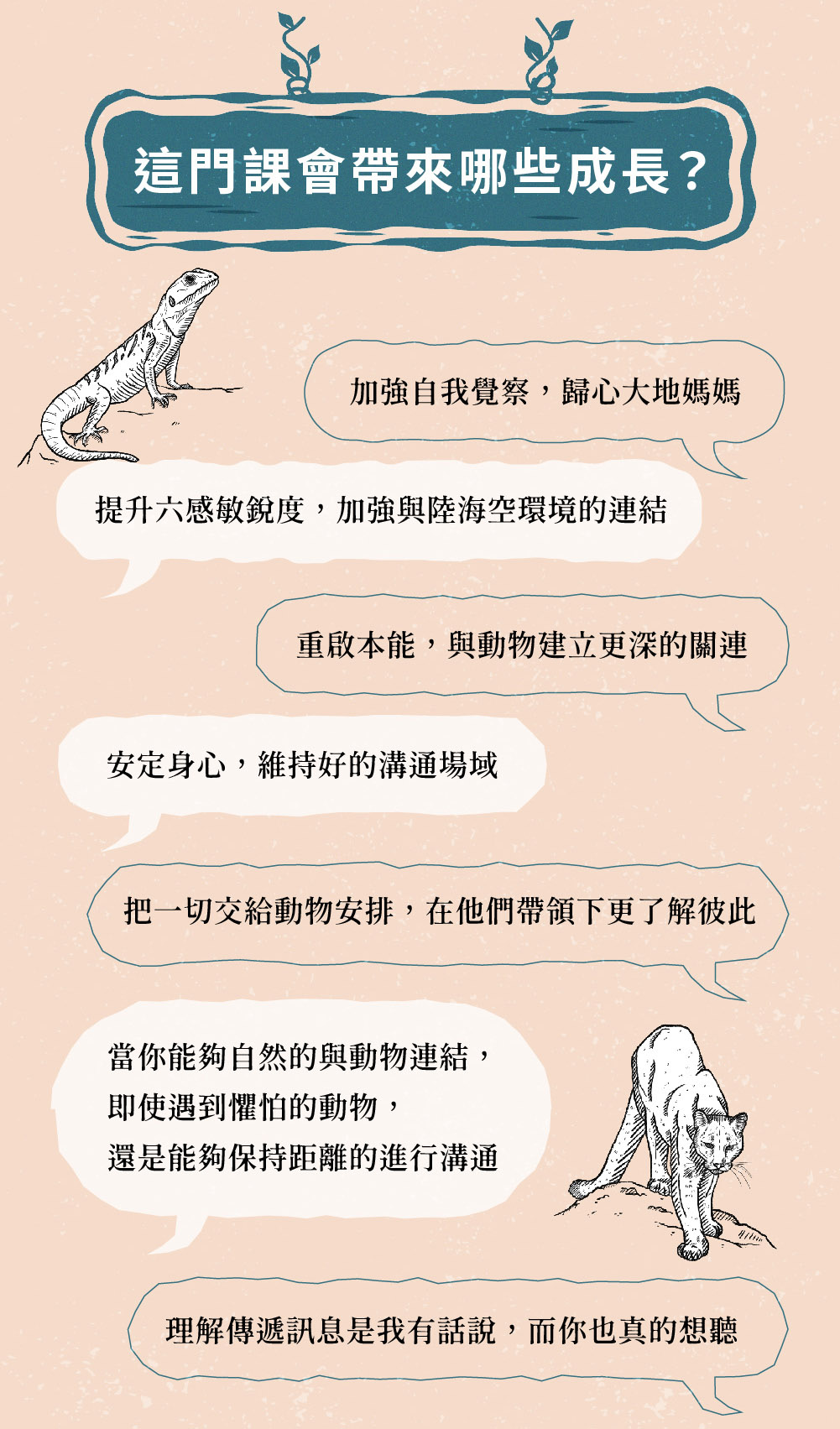 以靜心冥想打開六感,把自己交給動物,連結地水風火,真誠的溝通就會發生