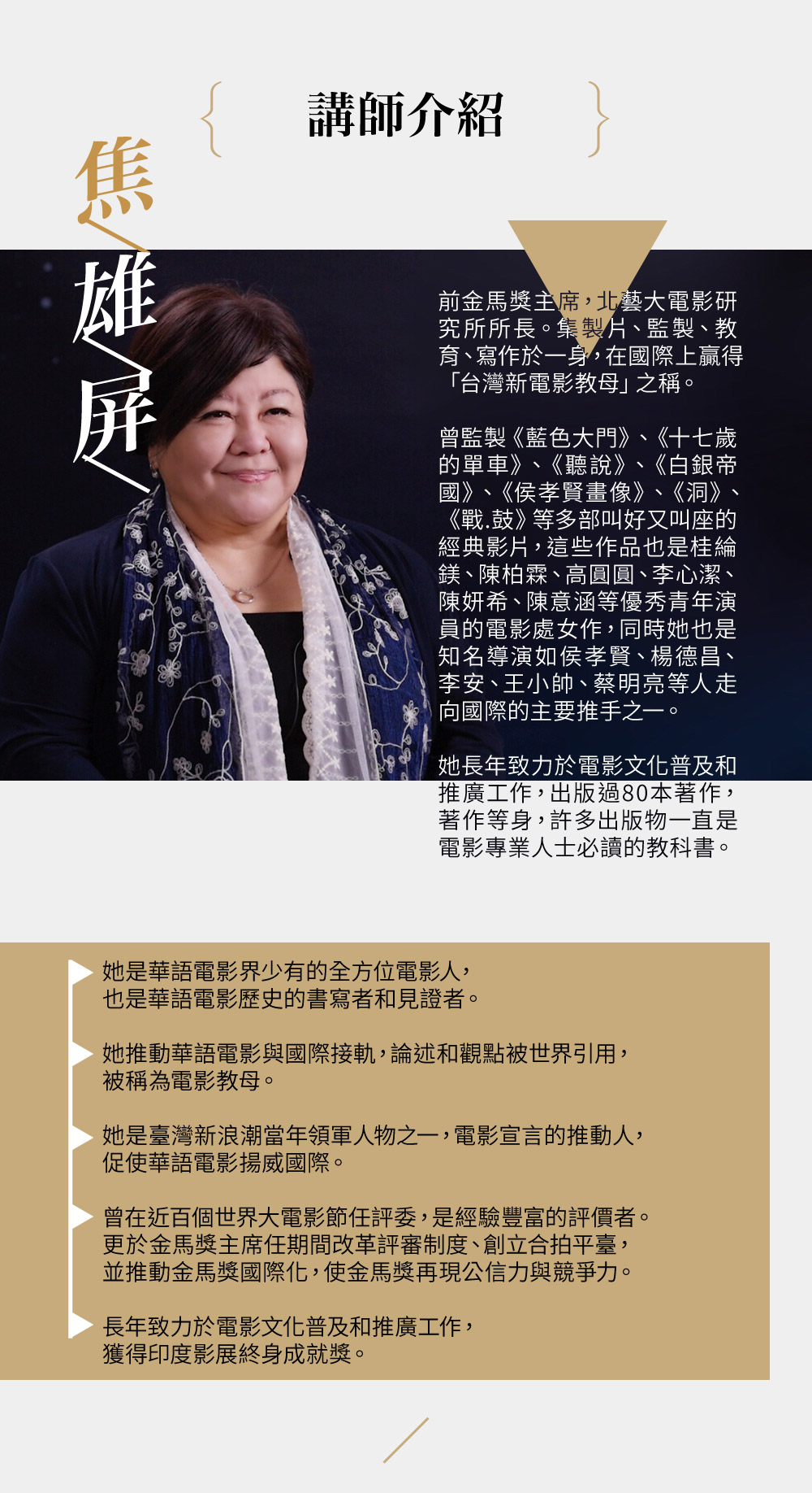前金馬獎主席、北藝大電影研究所所長