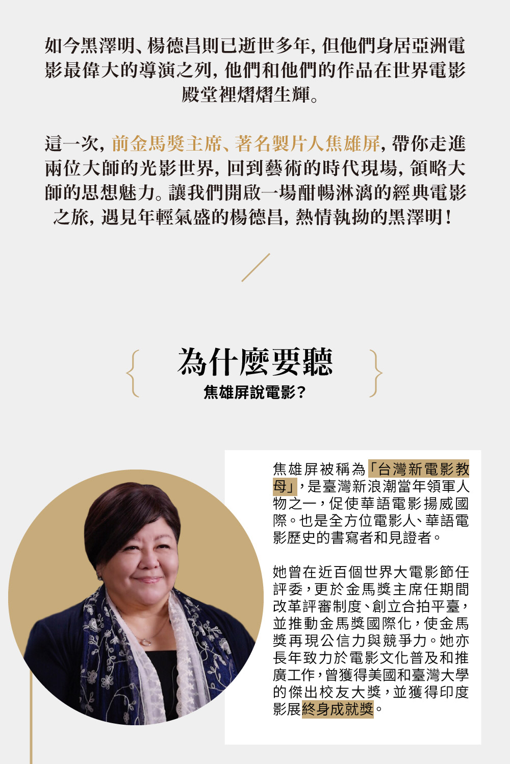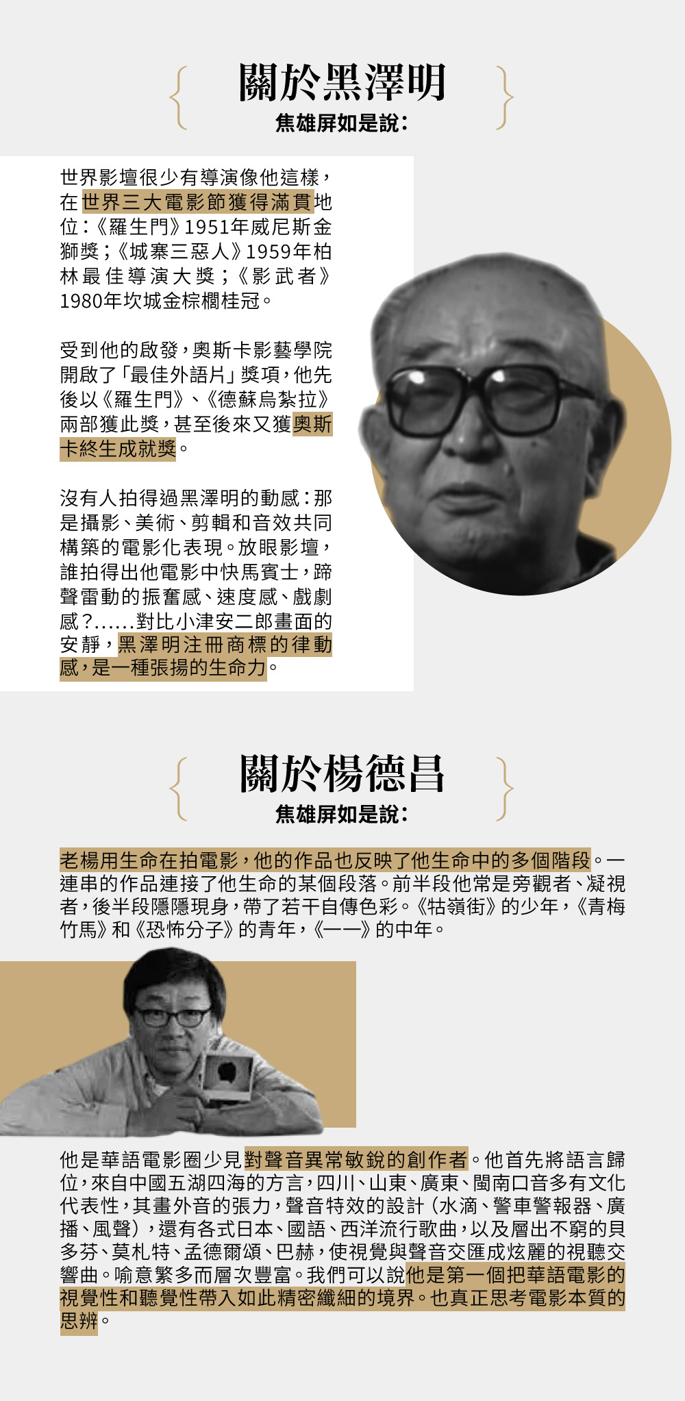 黑澤明與楊德昌——焦雄屏電影大師手冊