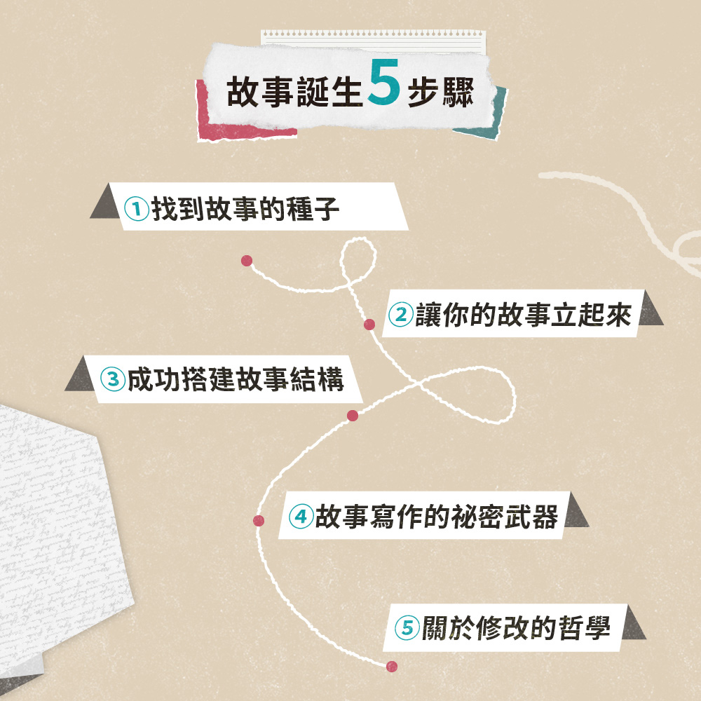 ★創作技巧:透過故事誕生的五大步驟,讓你一步步穩扎穩打,清楚掌握如何去寫出一個好故事。