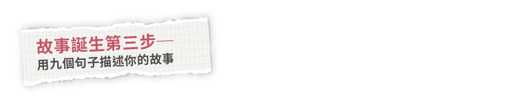 「將這九個句子擴展為更多的句子,每個句子最終描述了故事中的一幕場景,此時,練習真正的價值顯現出來——你剛剛寫下了整個故事大綱。」