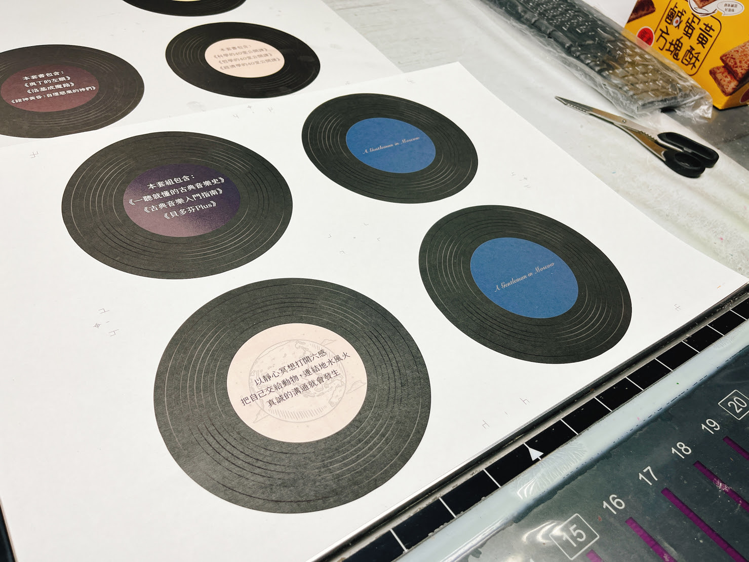 一開始同仁們也是進行各種討論和資料收集。因為音樂相關的東西與「聲音」的聯繫較為直覺,除了黑膠外,我們也提了像是錄音帶、彩膠等等設計。雖然大家討論得很開心,但現實是殘酷的,左思右想我們最後選擇了黑膠外型的商品設計(不過搞不好之後會有其他款式與大家見面喔~)