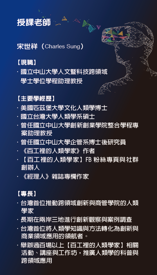 人類學家已成為各領域最需要的人才,歡迎你一起成為百工裡的人類學家。